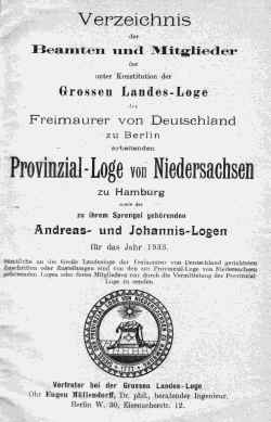 Im Mitgliederverzeichnis der Provinzial-Loge von Niedersachsen zu Hamburg für das Jahr 1933 findet sich auf Seite 75 bei den Mitgliedern der St. Johs.-Loge "Bonerges zur Bruderliebe" unter der lfd. Nummer 86 und der Ordnungszahl 764 in der Original-Matrikel der Eintrag: Kurtzahn, Ernst W. F. Schiffbau-Ingenieur und staatl. Gewerbe-Lehrer. 24, Ifflandstr. 40, 29.11.79, 16.10.19, PL. VII. D. h., er wurde am 16.10.1919 aufgenommen und hatte 1933 den VII. Grad (Kapitel) erreicht. |