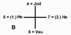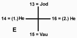 zwar den zu einer neuen, der dritten Siebenheit III, gebildet aus den beiden Dreiungen E und F. ![]() Die III. Siebenheit wird gebildet von den Arkana 13 bis 19.