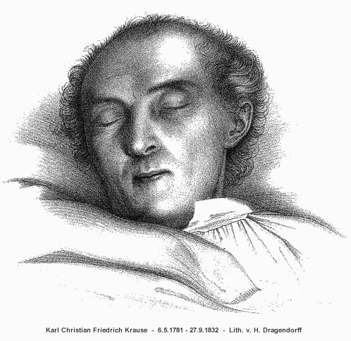 Krause stirbt im Alter von 51 Jahren in München an einem Schlaganfall. Bei der Beerdigung geben ihm nur wenige ein letztes Geleit. Der Menschheit hinterläßt er ein umfangreiches Werk auf den Gebieten der Philosophie, Mathematik, Naturwissenschaft, Musik, Religion, Anthropologie, Rechtswissenschaft, Pädagogik, Geschichte und Geographie, die später größtenteils auch in andere Sprachen übersetzt werden (Verzeichnis der wichtigsten Schriften Krauses). | |