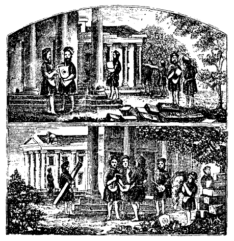 THE FOLLOWING PARABLE IS RECITED.For the kingdom of heaven is like unto a man that is an householder, which went out early in the morning to hire laborers into his vineyard. And when he had agreed with the laborers for a penny a day, he sent them into his vineyard. And he went out about the third hour, and saw others standing idle in the market-place, and said unto them, Go ye also into the vineyard; and whatsoever is right I will give you. And they went their way. And again he went out about the sixth and ninth hour, and did likewise. And about the eleventh hour, he went out and found others standing idle, and saith unto them, Why stand ye here all the day idle. They say unto him, Because no man bath hired us. He saith unto them, Go ye also into the |