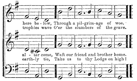 The Second SectionRecites the historical traditions of the Order, and presents to view a finished picture of the utmost consequence to the Fraternity. It exemplifies an instance of virtue, fortitude, and integrity, seldom equaled, and never excelled, in the history of man. |