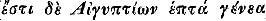Sieben oder sechs Mal sieben Tage währten die Reinigungen, welchen die ägyptischen Priester vor den grössern religiösen Festen sich zu unterwerfen hatten. 4) In der Mythe der Isis erscheinen auch sieben himmlische Skorpionen, vermuthlich astronomischer Bedeutung, deren Verhältniss zu dem Sterne der Isis, der Sothis oder dem Sirius, noch unaufgeklärt ist. 5) Sieben Mündungen wurden im Alterthume dem Nil zugeschrieben, also auch der Nil war ein siebenfacher gleich den ähnlichen indischen Strömen. Mittelägypten mit der Hauptstadt Memphis, das Land oberhalb der sieben Nilmündungen oder sieben Nilarme hiess nach Ptolemaeus 1) Welker, a. a. O., II. S. 470 unten. 2) Weimarisches Jahrbuch, Vl. S. 320. 3) Fallou, S. 434. 4) Prichard, a. a. O., S. 327. 5) Zeitschrift d. d. m. Gesellschaft, Bd. X. S, 688. |